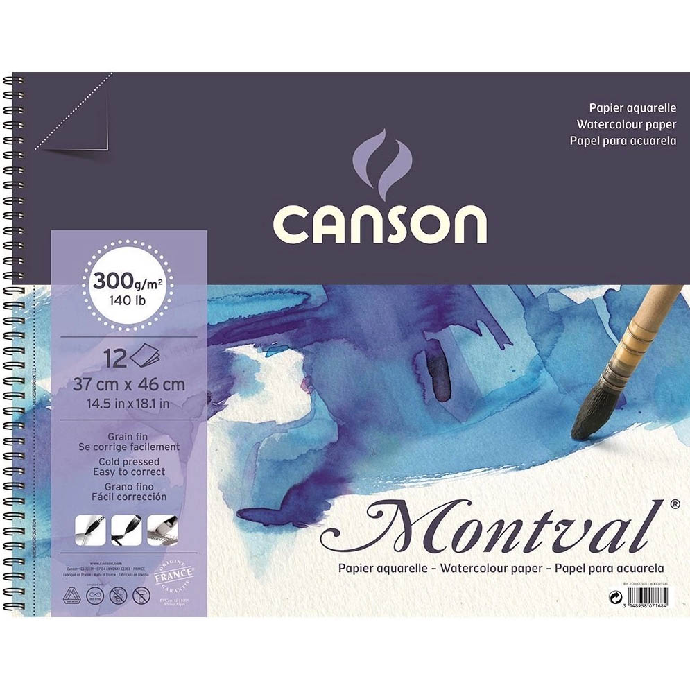 Akvarel papir u bloku spiralni uvez Canson Montval 37x46cm 12 listova 300g