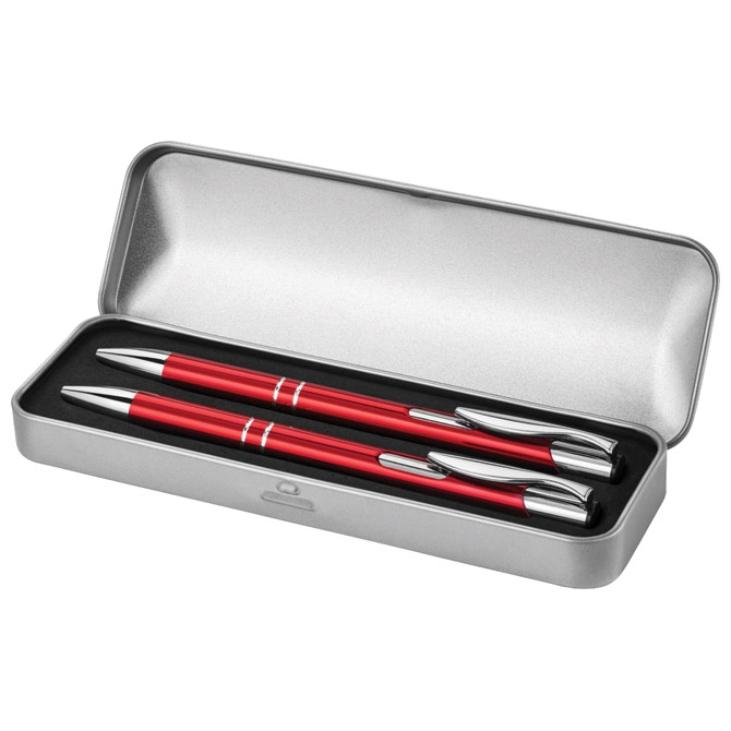 Garnitura olovka kemijska+olovka tehnička u metalnoj kutiji crvena