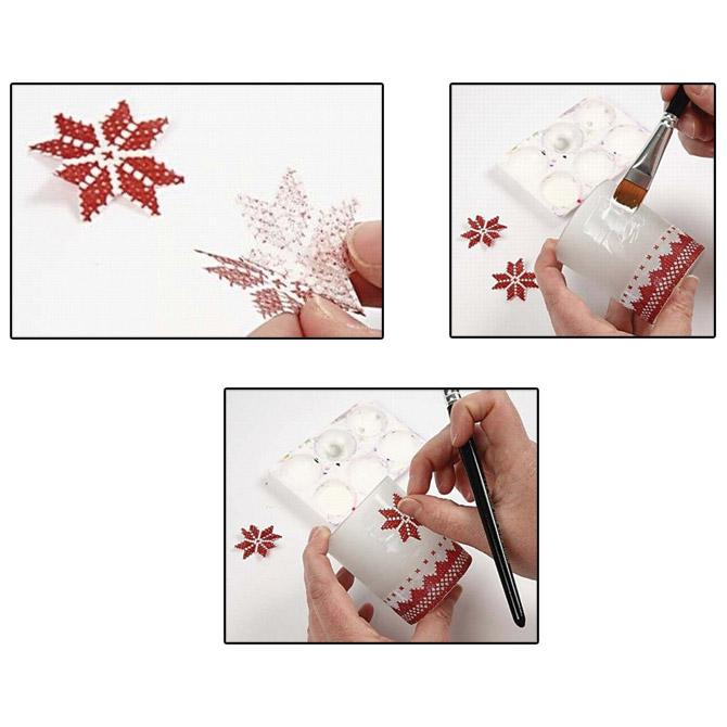 - uputa: ljepilo naneste umjereno na željeno mjesto, na još svježe naneseno ljepilo stavite gornji sloj salvete i nakon što se osuši premažete sa istim ljepilom 1-2 puta radi zaštite i sjaja