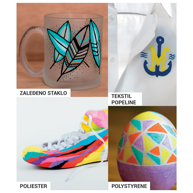 - Za pisanje i dekoriranje na svjetlom i tamnom papiru i primjena na gotovo svim površinama (plastika, metal, tkanina, staklo…)