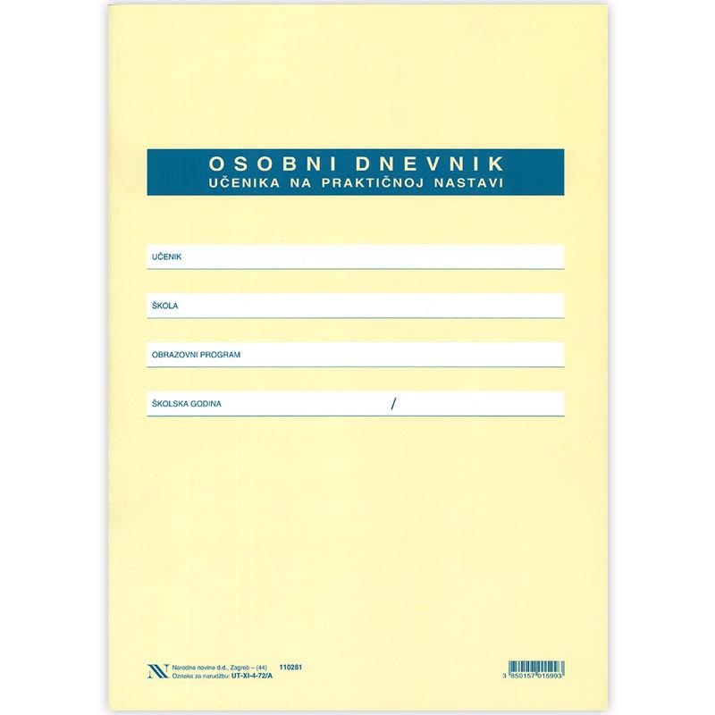 Osobni dnevnik učenika na praktičnoj nastavi, obrazac XI-4-72/A NN