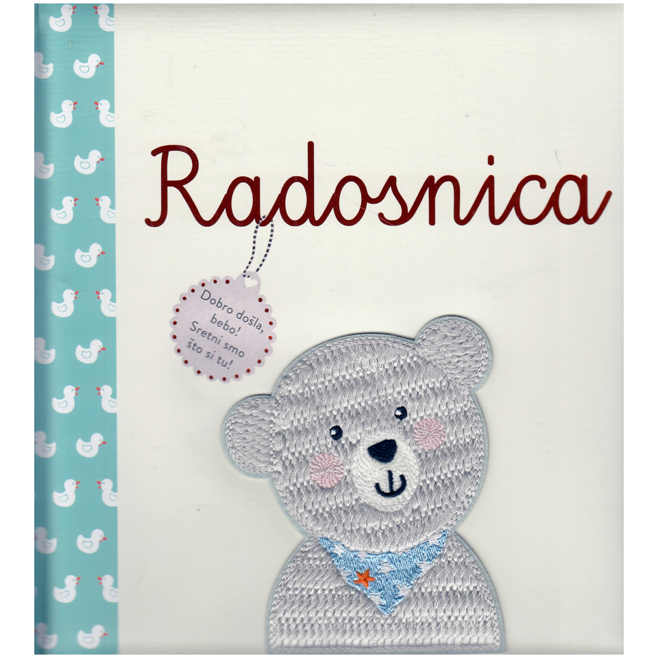 - Moderan album s aplikacijom od pletiva, sa zalijepljenim prozorčićima (pisma, srca) i mnogo posebnih dodataka kao što su leporelo s uspavankama, metar i okvir za slike