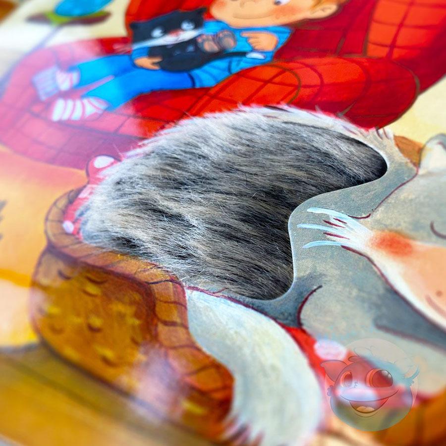 Svaka stranica ove osjetilne slikovnice sa zvukovima obogaćena je mekom tkaninom koja dočarava dodir krzna ili perja umiljatih životinjica. Kad počeškaju kudravog psića, pomiluju uspavanu macu ili svilenkasto perje zaigrane papigice, mališane će iznenaditi lavež, mjauk, cvrkut i ostali zvukovi četveronožnih i pernatih prijatelja.